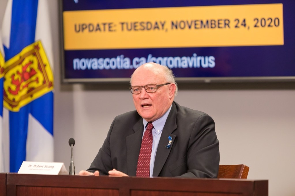 新斯科舍省卫生首席医疗官罗伯特·斯特朗博士在周二的COVID通报会上发言。-图片:新斯科舍省通信