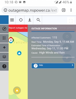一位读者告诉我们,卢嫩堡的停电始于周六晚上,而不是国家电力公司网站上的停电地图所描述的周一上午。