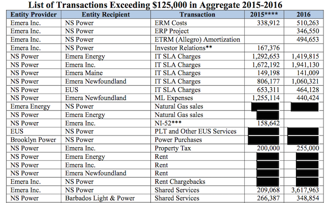 审计已经屏蔽或修改了显示NS Power向两家附属公司收取多少租金的信息。报告指出,这与UARB此前批准的向母公司(Emera)收取NS Power办公空间租金的金额相同。尽管如此,NS Power仍需获得UARB的批准,以确保其他Emera公司支付公平的市场价值,而不是获得私下交易。