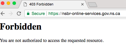 但是,我星期五由一名技术专家联系,这位判决在过去,曾在该行业工作过。让我们打电话给这个人亚当,这不是他们的真名。亚当告诉我一个省级网页 - 具体而言,这一页使用URL https://nsbr-online-services.gov.ns.ca - 在2017年6月28日被黑客被攻击。这是一个屏幕截图,首页被黑客被黑了: