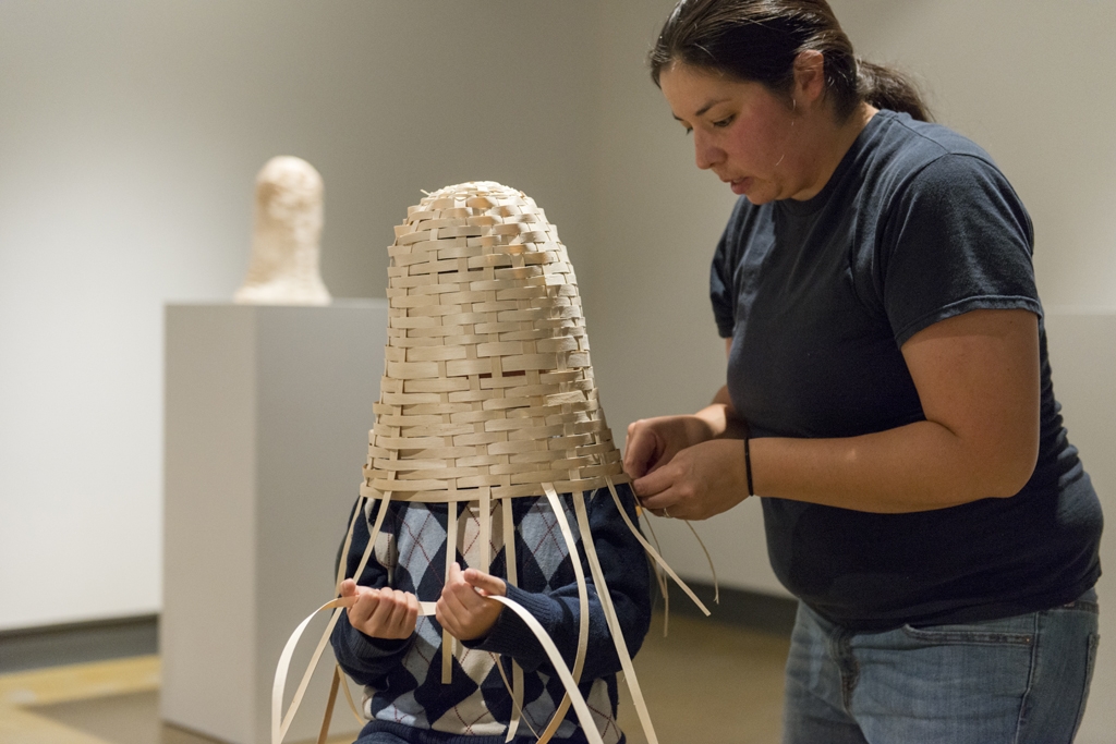艺术家厄休拉·约翰逊在干预和行为艺术节上表演L 'nuwelti 'k(我们是印度人),该艺术节由Jennifer b