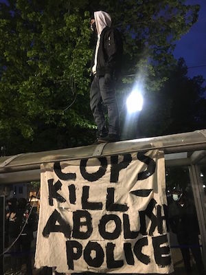我说:“我们现在就在十字路口!春天花园和南方公园!”他对着射击场喊道:“她说他们还在街上!”我告诉他们关于抗议的事,关于人数的事,关于黑人现在正充斥着街道,充斥着音乐,用舞蹈宣泄我们的愤怒和存在。他一直对我喊更新。他们问我要照片,以确保我能拍到好的照片,这样我才能真正向他们展示发生了什么。