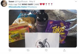The Nova Scotia Wine Fairies promoted random acts of kindness by asking group members to send bags of treats and wine to others. Photo: Twitter