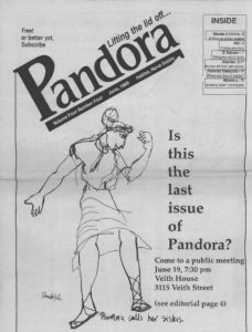 潘多拉除了邮寄费用外,都是免费发放的,主要依靠广告、筹款和捐赠来维持运营。由于该团体成员希望避免政治干预,他们通常不申请或接受政府资金,除了用于雇用夏季帮工的短期就业补贴。在1986年的女权主义期刊会议上,在安大略的奥兰吉维尔举行,代表们承诺在他们的出版物中增加女同性恋的知名度。潘多拉‘s run-in with SecState came after it asked for a grant to help it host the next feminist periodical meeting in Halifax in 1987. Because the collective refused to leave abortion and lesbianism off their conference agenda, or even pretend to do so, they did not get the grant and cancelled the conference. For Lloyd, it was “an ethical issue… I mean this was the whole point of having a feminist periodical, a women’s paper, it was about not being silenced.”