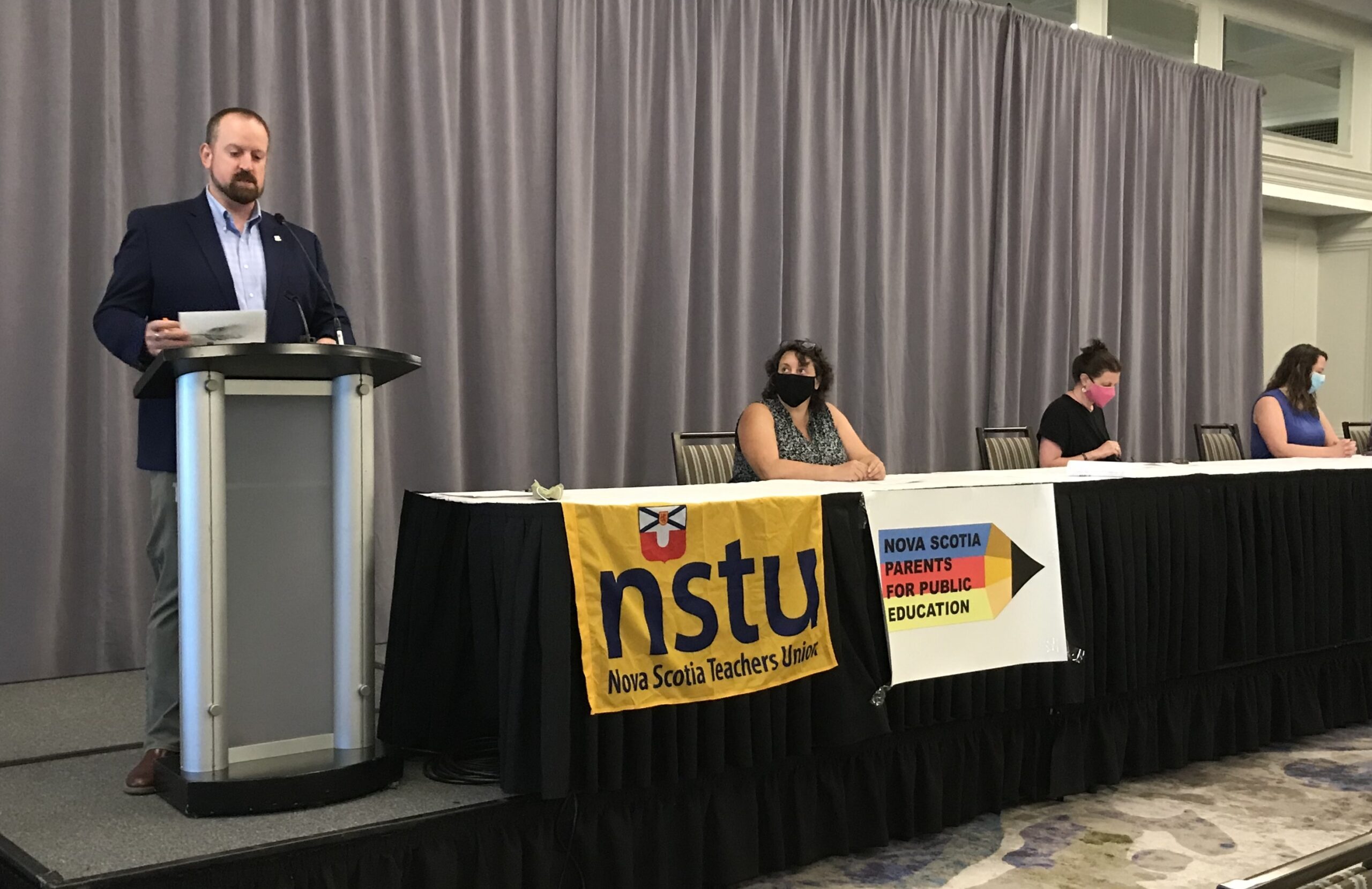 新斯科舍省公共教育家长组织的四名代表今天在新闻发布会上与新斯科舍省教师工会联合起来,呼吁改善该省的返校计划。