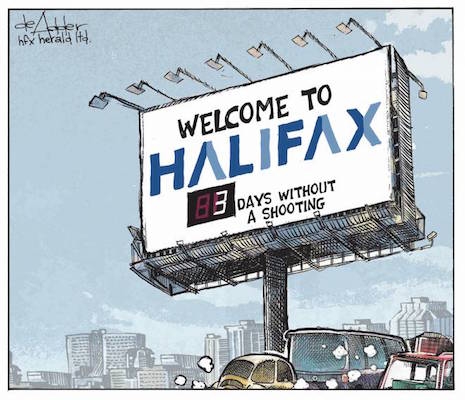 During the singing of the national anthem, asserting white Canada’s peaceful goodness and kindness while standing in a square originated by white settlers whose “founding” of Halifax was inseparable from shows of military force, we were encouraged to switch to French just in time for the lyrics in the anthem, “Car ton bras sait porter l’épée,/Il sait porter la croix!” — “For your arm knows how to bear the sword/It knows how to carry the cross!” These lyrics of holy war seem particularly inappropriate in honouring and mourning Muslims, and counter to the mythology created all night that violence — white violence — was an anomaly in Canada, and could be disavowed and disowned.