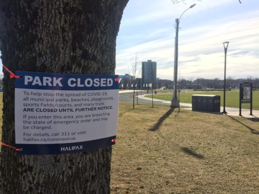哈利法克斯公共公园的道路对社交距离交通开放,但公园仍然关闭。照片:巴特勒艾丽卡