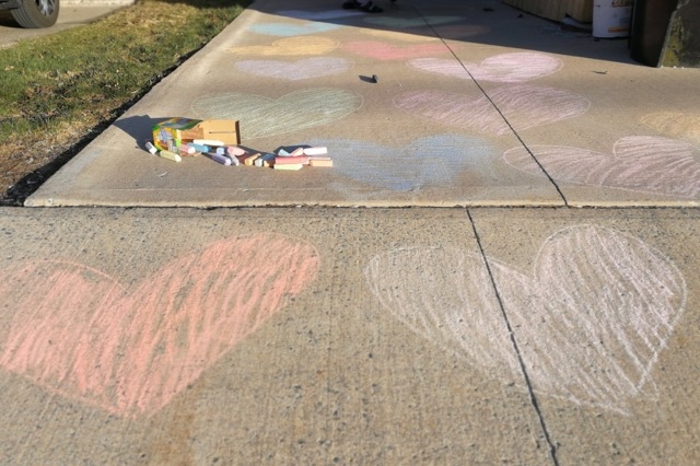 哈利法克斯顶峰大街上的粉笔心:人们纪念上周末22人被谋杀的悲剧的一种小方式。照片:巴特勒艾丽卡