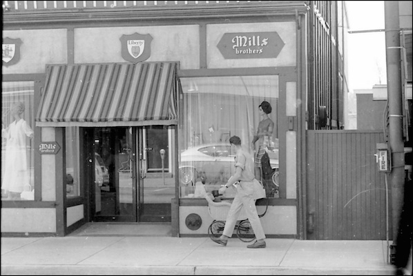 一个非常特殊的柳条perambulator (with a baby in it) had been left outside Mills while the mother went in to shop. This was standard practice at the time — it would be stranger to see someone try to take a baby carriage into a shop. I took a series of shots hoping one would be useful.