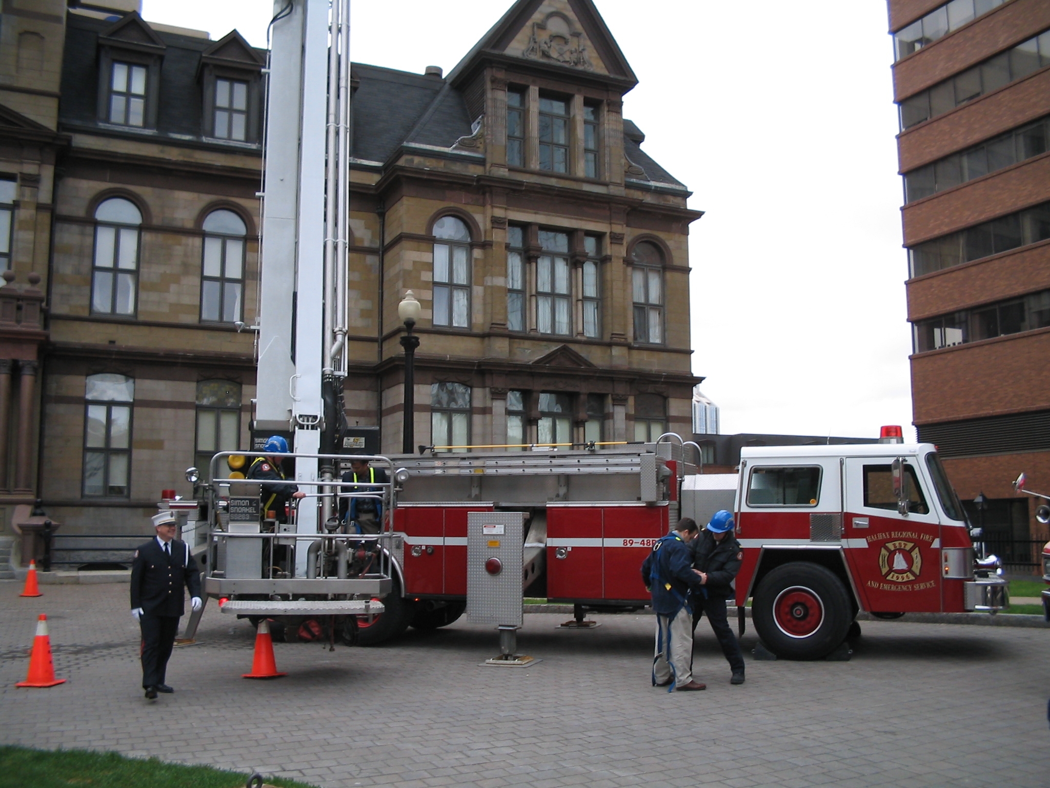 2004年,一辆哈利法克斯地区消防和紧急卡车在哈利法克斯市政厅前的活动中。图片:flickr用户William Matheson