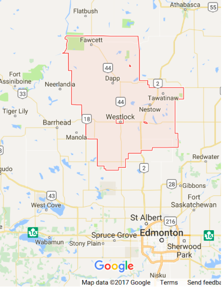 Westlock县,阿尔伯塔省。谷歌地图