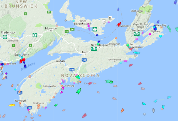 8点:Oceanex三趾鹬从41号码头驶往圣约翰的滚装船集装箱