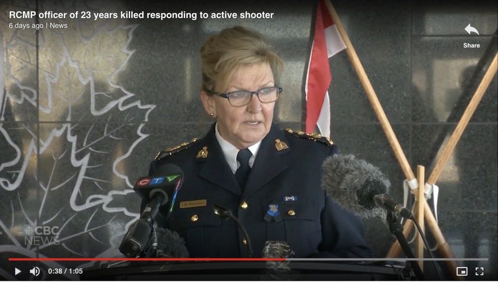 皇家骑警的简报发生时,几乎和那天一样超现实。加拿大皇家骑警在新斯科舍省的指挥官李·伯格曼(Lee Bergerman)一开始就没有重述已知情况,甚至没有指出有多少人伤亡,而是说这是对海蒂·史蒂文森由衷的悼词她还分享了另一名当时未透露姓名的警官受伤但正在康复的消息,他将得到皇家骑警“家人”的支持。