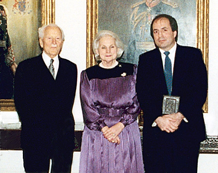 从左至右:前总督罗兰·米切纳,加拿大总督珍妮·Sauvé;《环球邮报》记者保罗·帕兰戈,1988年米切纳奖得主。图片:Raynold Kolly中士,由总督秘书办公室提供