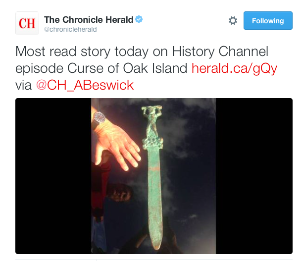 历史渠道将很快播出橡树岛诅咒的一集,赋予声称据称在这个省的海岸上发现的罗马剑证明欧洲人在这里在这里航行,可能是早些时候在这里航行。