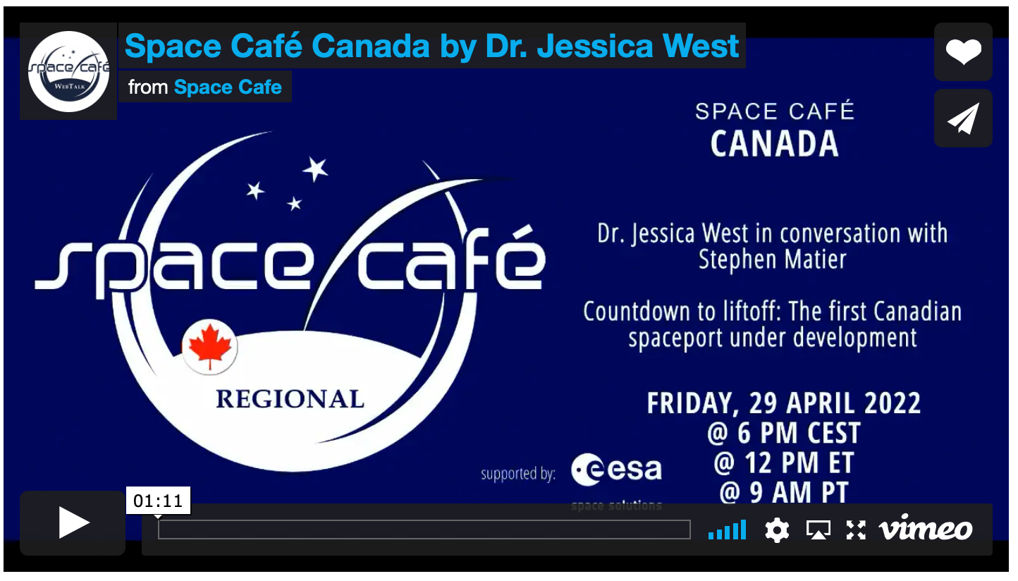 四月中旬,我收到通知,下一个集加拿大太空咖啡馆将功能斯蒂芬·马蒂尔的总裁兼首席执行官海上发射服务和新斯科舍省航天港,与杰西卡·西博士他是犁头计划的高级研究员,也是SpaceWatch。全球”: