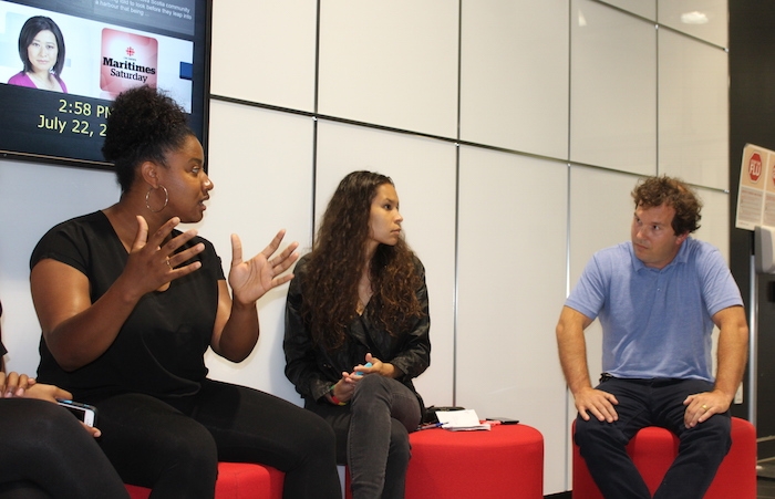 大约15分钟后,加拿大广播公司哈利法克斯执行董事肯·麦金托什(Ken McIntosh)来到大厅,听取抗议者的意见。