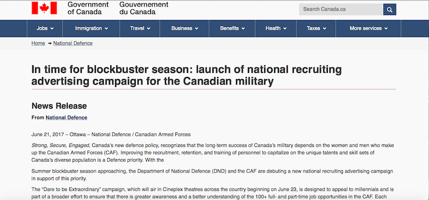 因为我是非常爱国,我决定向加拿大武装部队提供我的技能来帮助他们最新的广告活动。