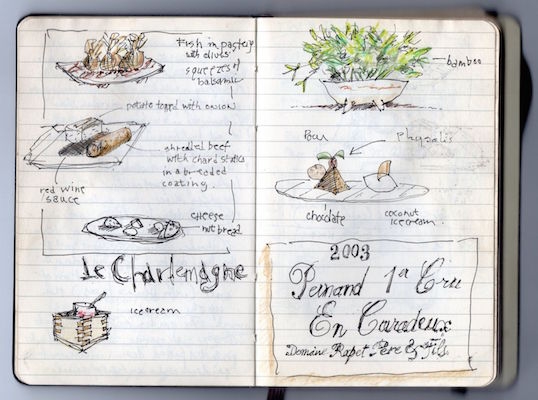 令人难过的是,自从我有了手机摄像头后,在法国餐厅享用美餐的动力就不再相同了,连酒瓶上的标签也不一样了!(上图所示)