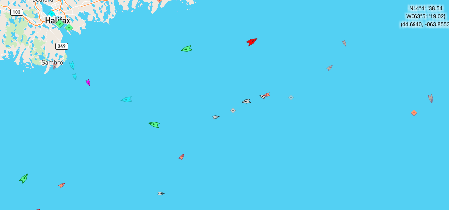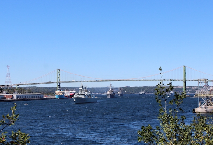昨天,参与“狂怒弯刀”的11艘船中有9艘在哈利法克斯港外游行: