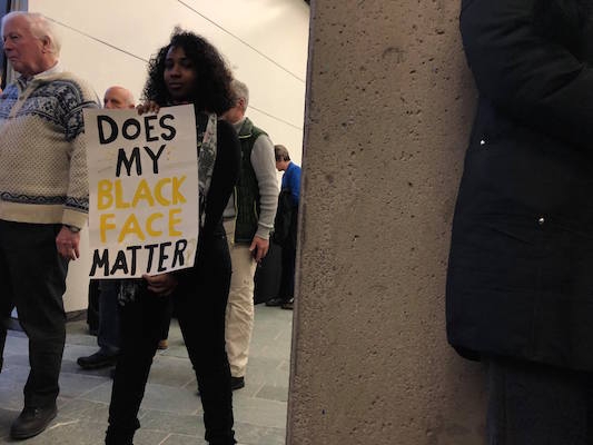 学生在他们身上发现的一个严重问题之一新闻稿麦金农在书中宣称,黑脸“并不总是”种族主义,抗议黑脸或谴责穿黑脸的人是危险的“分裂”大学。