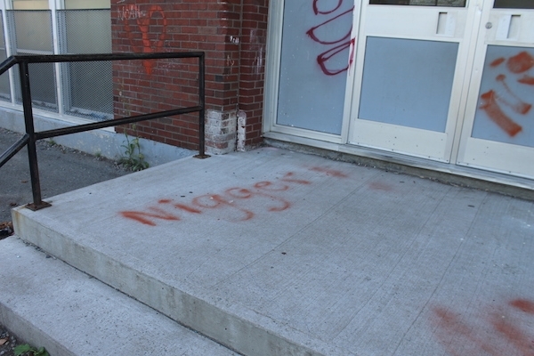 有种族主义涂鸦北普雷斯顿的选举标语,在Africville,挂在墙上市中心的哈利法克斯,在达尔豪斯校区,喷漆在上面东Antigonish教育中心,并在兰斯·斯帕克斯车的引擎盖,以及其他事件。