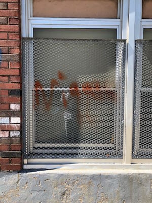 周六早上,虽然大部分涂鸦已经被清除,但清洁工却没有注意到窗户上涂写的污迹: