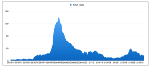 蒂姆·博斯克(Tim Bousquet)绘制的自秋季以来美国活跃的COVID-19病例图表。