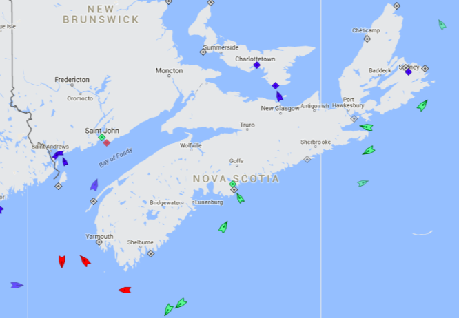 周三早上8点30分,新斯科舍附近海域。地图:marinetraffic.com