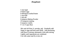 我的姑姑科琳娜也没有,但分享了一些她自己的久经考验和真实的食谱。她说家里的老大,我的姑姑罗莎琳,可能知道甜甜圈的配方。罗莎琳没有,但她肯定记得。