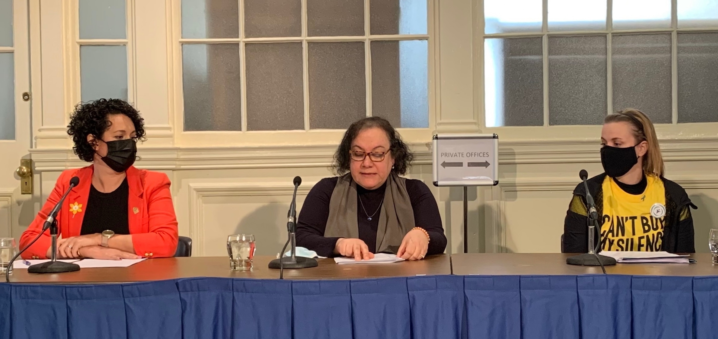 新民主党议院领袖Claudia Chender(左),权益观察的Zainab Almukhtar和阿瓦隆创伤治疗师Kristina Fifield。照片:珍妮弗·亨德森