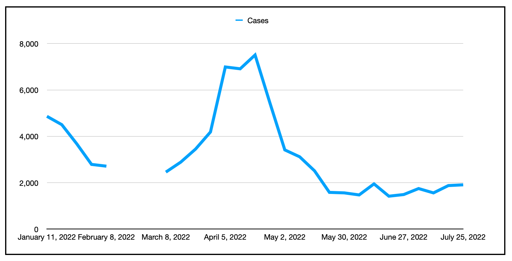 在同一时期,实验室确认的(PCR检测)新病例有1910例。这比前几周略有增加,但我认为这个数字正变得越来越无关紧要,因为许多人都懒得去做PCR检测——例如,一位朋友告诉我,她农村路上的每个人最近都生病了,但没有人跑了一个多小时去最近的检测中心;他们只是安然度过疾病,而且从未出现在官方报告中。