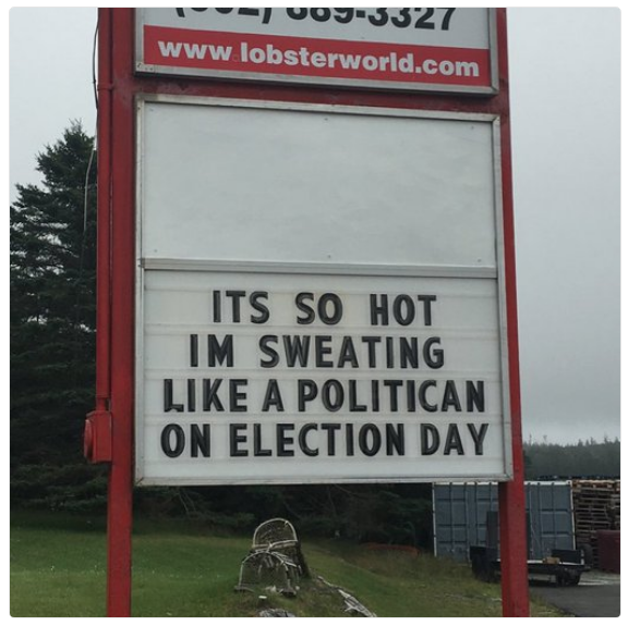 #EasternShoreNS,我看到这个标志与月份的双胞胎 - 很高兴看到http:// www。lobsterworld.com.从它的壳中出来炫耀一点幽默!欢呼&cod sake保持很酷!人@Lobsterworld.人