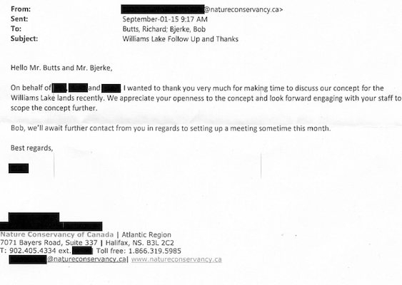 这些会议是秘密 - 没有议员被告知他们,公众未通知。But it’s clear that by the summer of 2015, a plan was in the works to have the city and Nature Conservancy buy the land from Clayton Developments, and that Richard Butts was coordinating the effort, while city planner Bob Bjerke was assigned to work out the details.