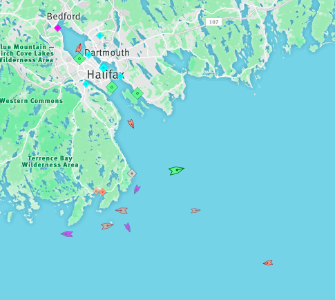凌晨6点:大西洋卡地亚,Ro-Ro容器,到达Fairview Cove来自纽约(追踪器)