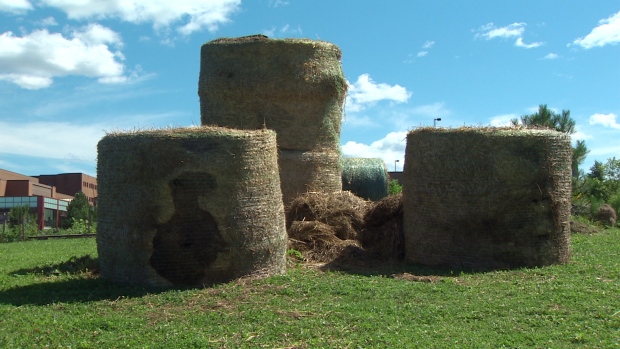 与此同时,哈利法克斯警方正在询问乘坐建筑物的人们走路,Baley The Hay Bale Bear WaS.被贬低的人!