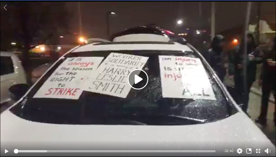 Supporters sent coffee and pizza to the line. Tony Tracy from the Canadian Labour Congresslive streamedfrom the gates.