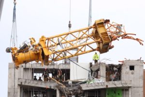 倒塌的吊车的最后一块残骸被从南公园街的建筑工地移走了。照片:NSTIR