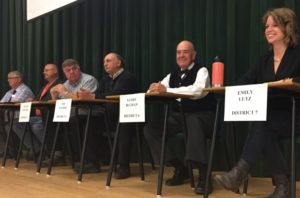 艾米莉Lutz,右,在中央国王高中的辩论中。她赢得了这个模拟投票的投票,最终是第7区的席位。照片:艾米莉Lutz。