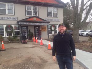 Berwick的副市长Ty Walsh在镇前城镇办事处前,现在拥有一家咖啡厅和其他业务。Walsh was elected to town council when he was 30 and became deputy mayor in November.他正在努力将年轻家庭带到社区。照片:Suzanne租金