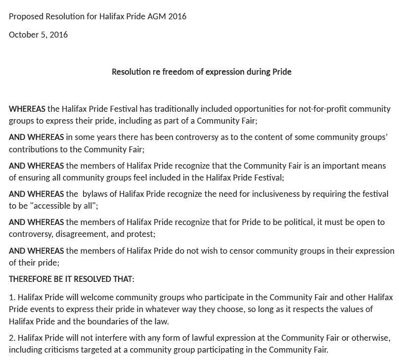 这一问题将在10月5日举行的Pride Halifax年度股东大会上讨论。