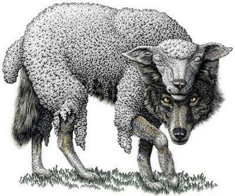 这是圣经中的警告:“你们要防备假先知,他们到你们这里来,外面披着羊皮,里面却是残暴的狼”(马太福音7:15)。