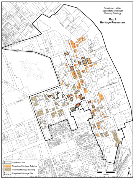 工作人员报告在这是彻头彻尾的沮丧。2009年,创建了一张地图,显示了市中心的遗产和潜在的遗产。具体而言,地图“显示15个地标网站,163个注册的遗产建筑,3个注册的遗产,以及位于市中心的哈利法克斯计划区的141个潜在的遗产建筑。”