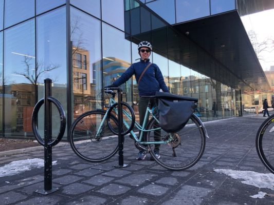 哈利法克斯自行车市长吉利安·班菲尔德在中央图书馆外。来源:@BikeMayorHfx在推特上.