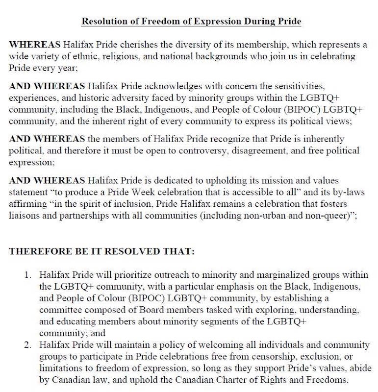简而言之,哈利法克斯骄傲协会年度大会上发生的事情是,同性恋异性恋者组织起来投票否决LGBTQ+人的动议,导致大多数BIPOC(黑人/土著/有色人种)社区以及许多同性恋和跨性别者社区成员罢工。