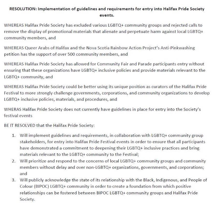 结果是,不仅是哈利法克斯的酷刑动作上的奇怪阿拉伯人,而且那些不是同性恋社区成员的人也被唯一普遍倡导LGBTQ +社区所能够的LGBTQ +人员的议员投票设置指南以确定骄傲的方向和内容。
