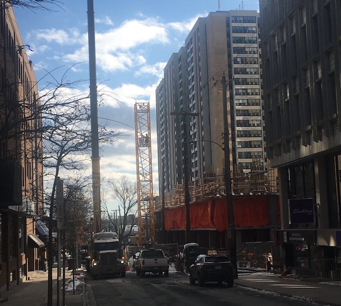 第二台起重机停在南公园街,等待重新安装。照片:布雷特拉斯金/ CBC