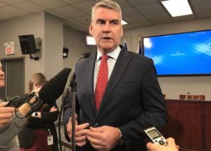 斯蒂芬麦克尼尔总理向记者讲话。照片:Jennifer Henderson