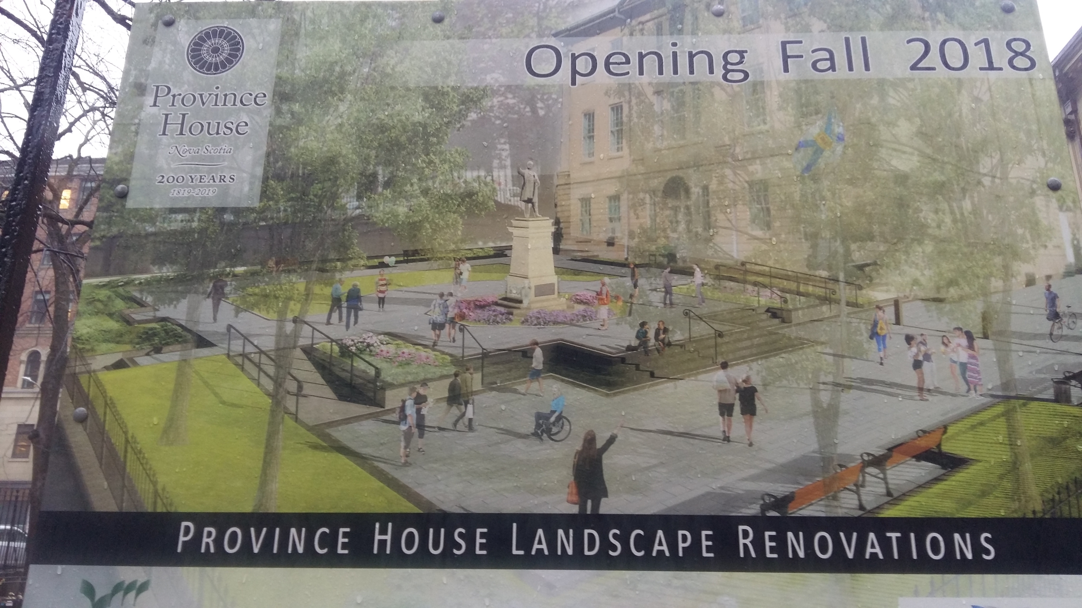 Joan Baxter在Province House发送了以下展示景观重新设计的渲染照片。渲染附在省屋周围的围栏上: