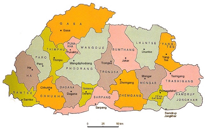 - 1962年,一条连接廷布(廷布是该国首都)和位于印度西南部边境的彭特肖林(Phuntsholing)的175公里铺设公路竣工。↩